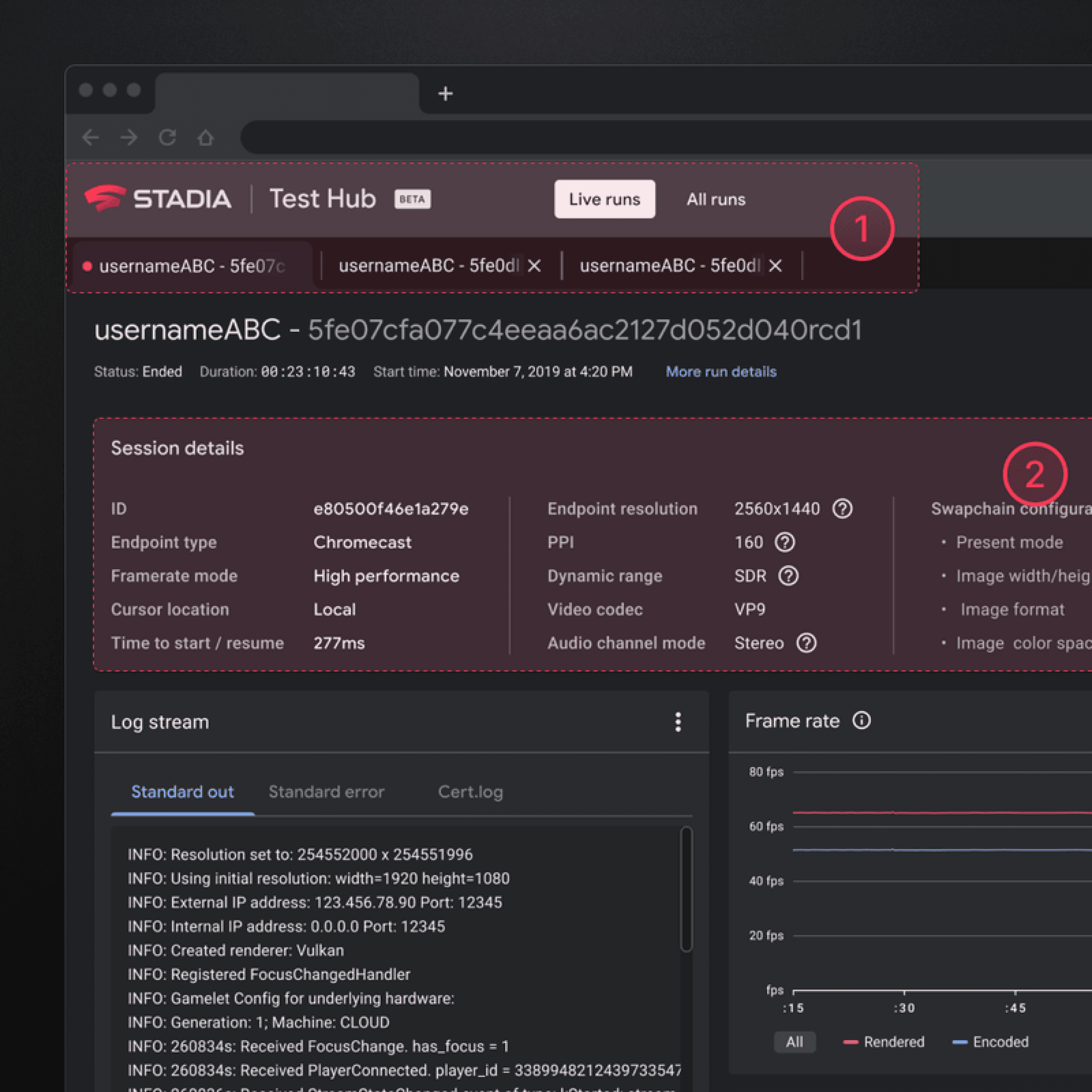 Test Hub was a companion web app originally built to be used by Stadia game developers to monitor, emulate, capture, and debug their games in the cloud.