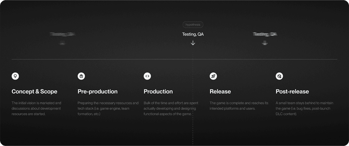 It was critical to first understand where the playtesting vertical fit in amongst the other pillars of standardized development lifecycles . Based on historical user interview data, turns out, it was actually a (very messy)
