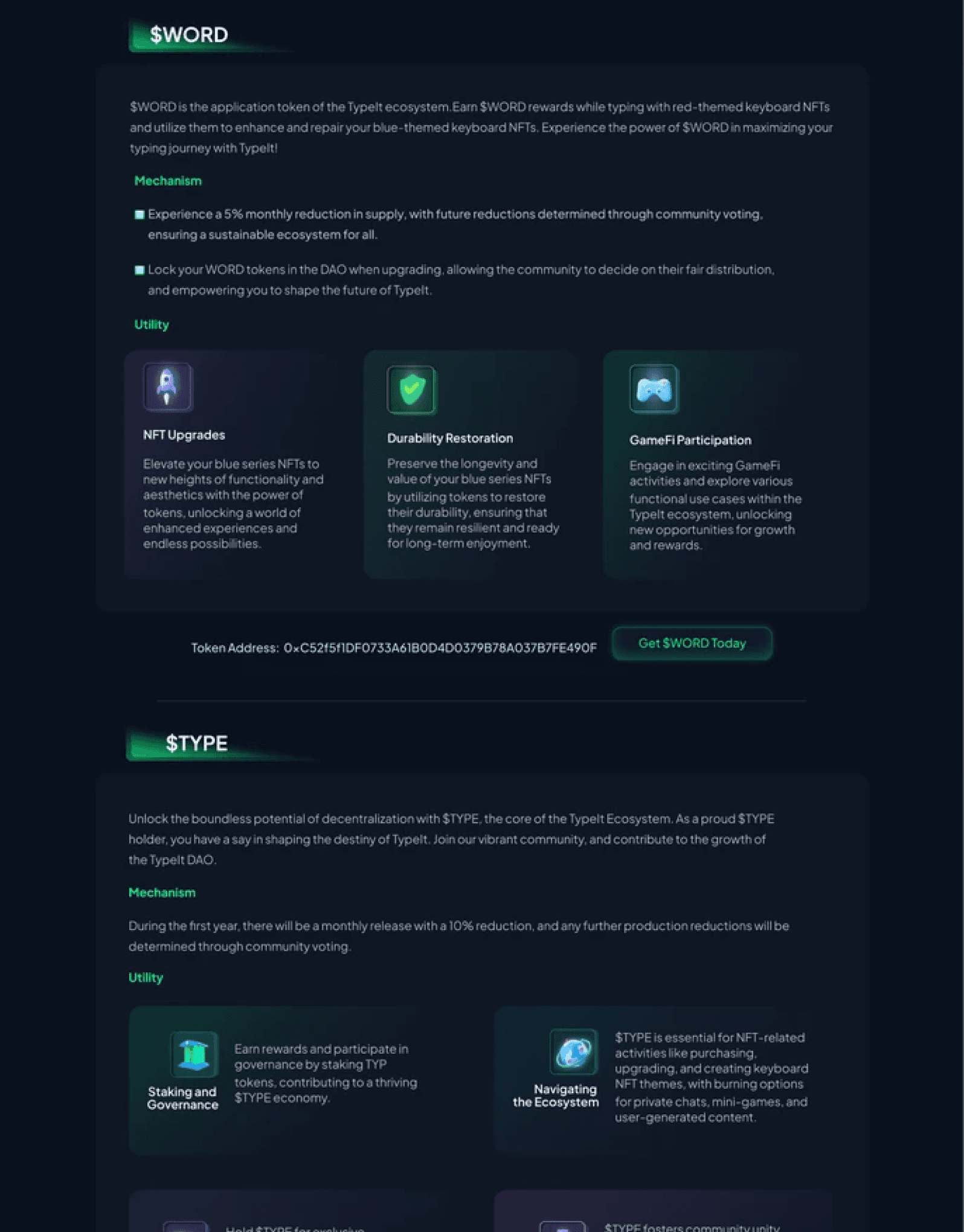 The Tokenomics page's scattered information and