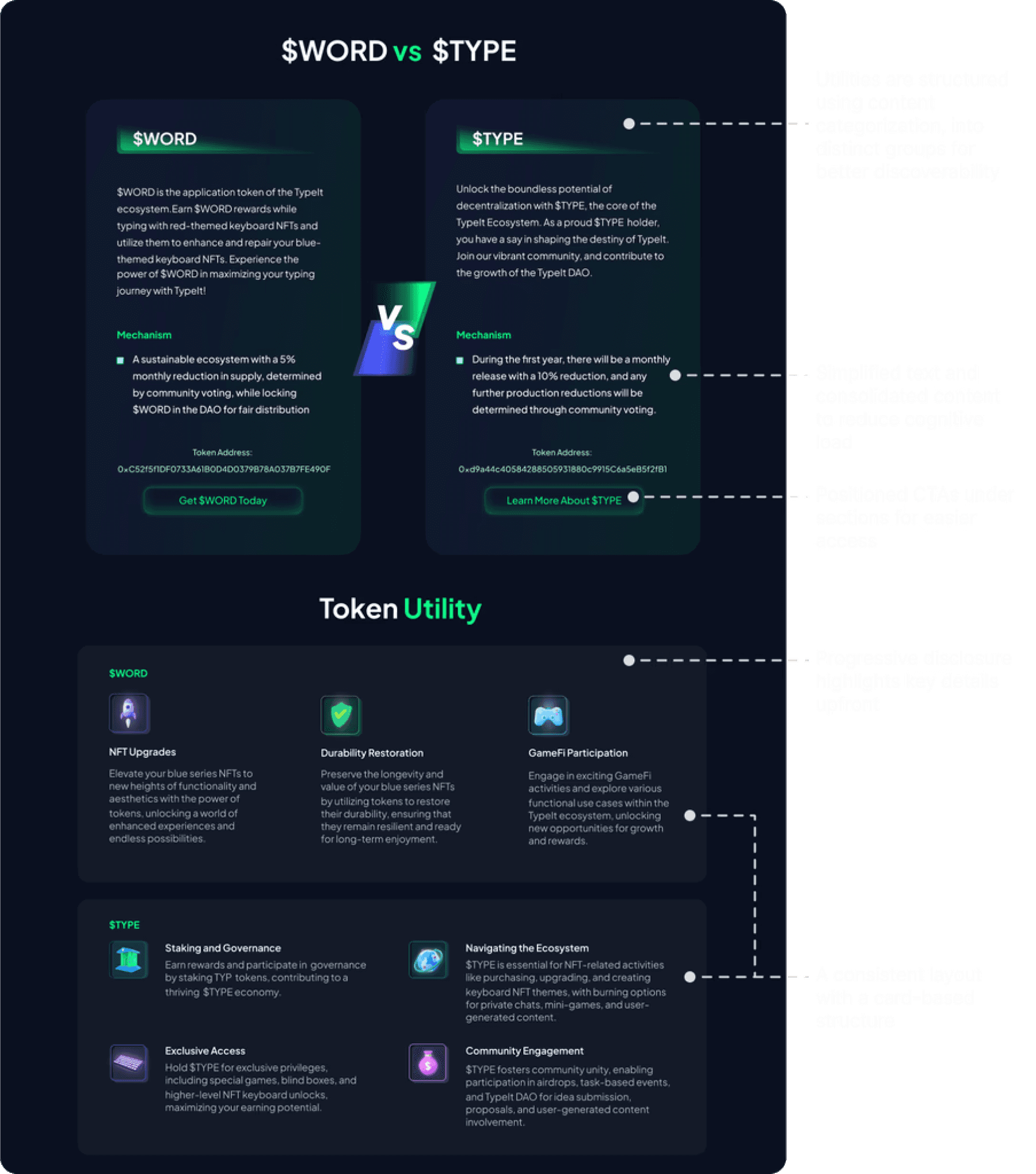 I redesigned the Invitation and Tokenomics pages to resolve fragmented