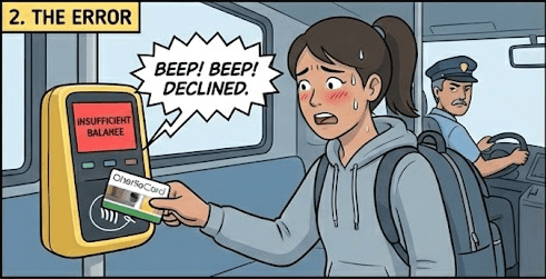 Users risk running out of funds on their cards due to the inability to recharge digitally, leading to potential missed trips.