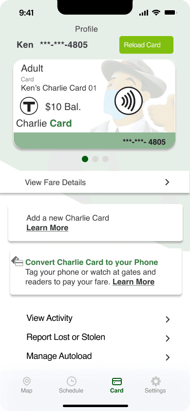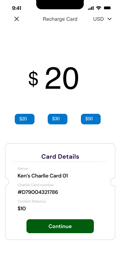 Due to the context of the usage we decided to design an app. Recharge your CharlieCard anytime, anywhere—no more last-minute kiosk runs.