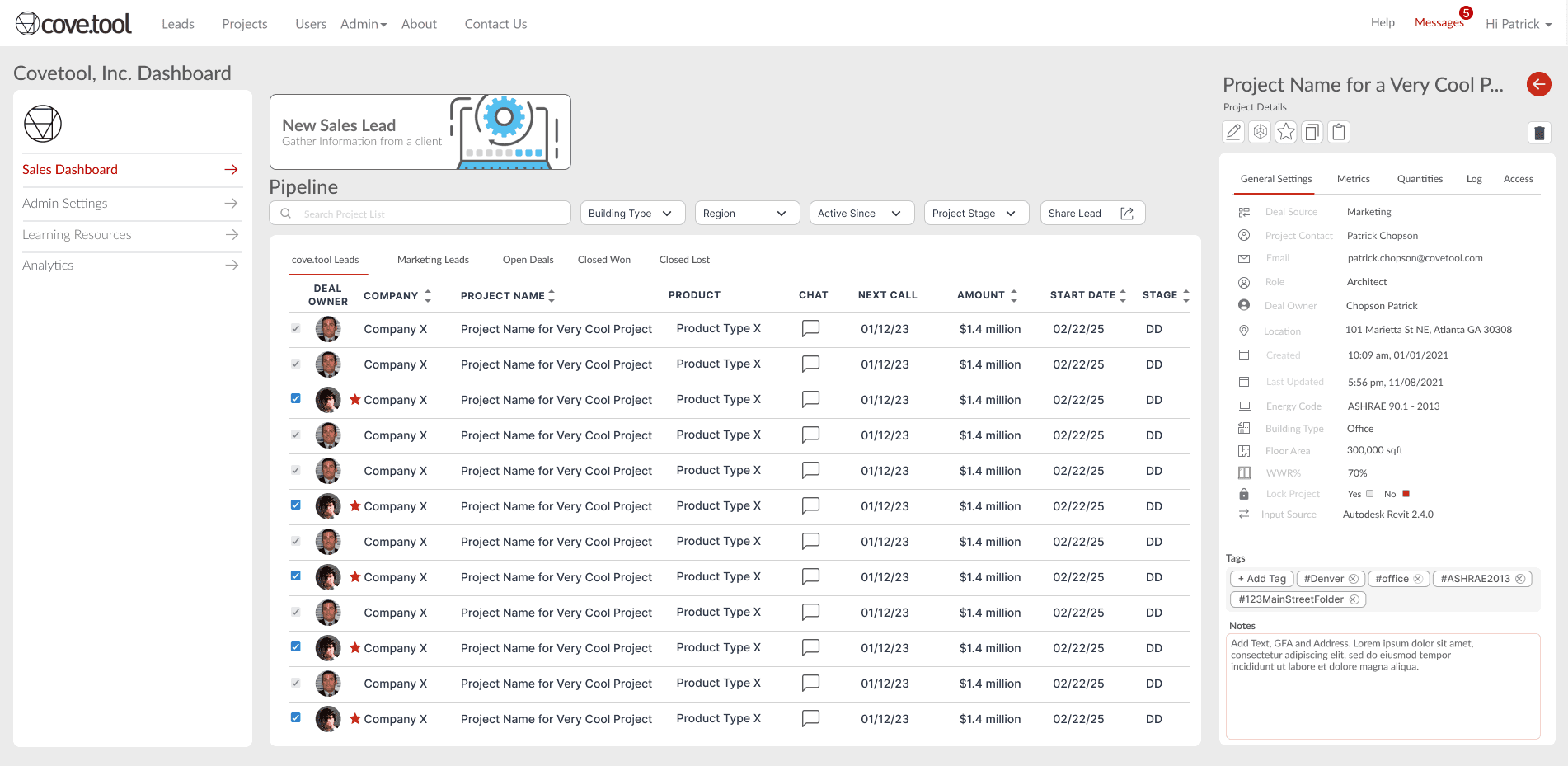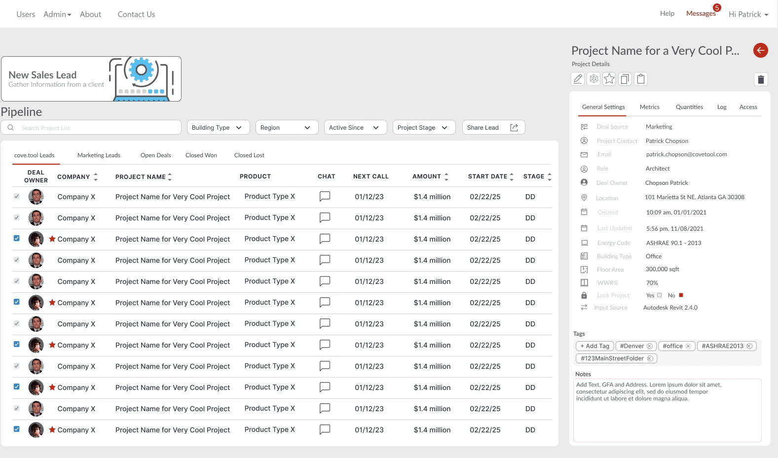 An employee seeks insight on a specific lead or project, they'd desire a panel carrying relevant data for diverse aspects of the project.
