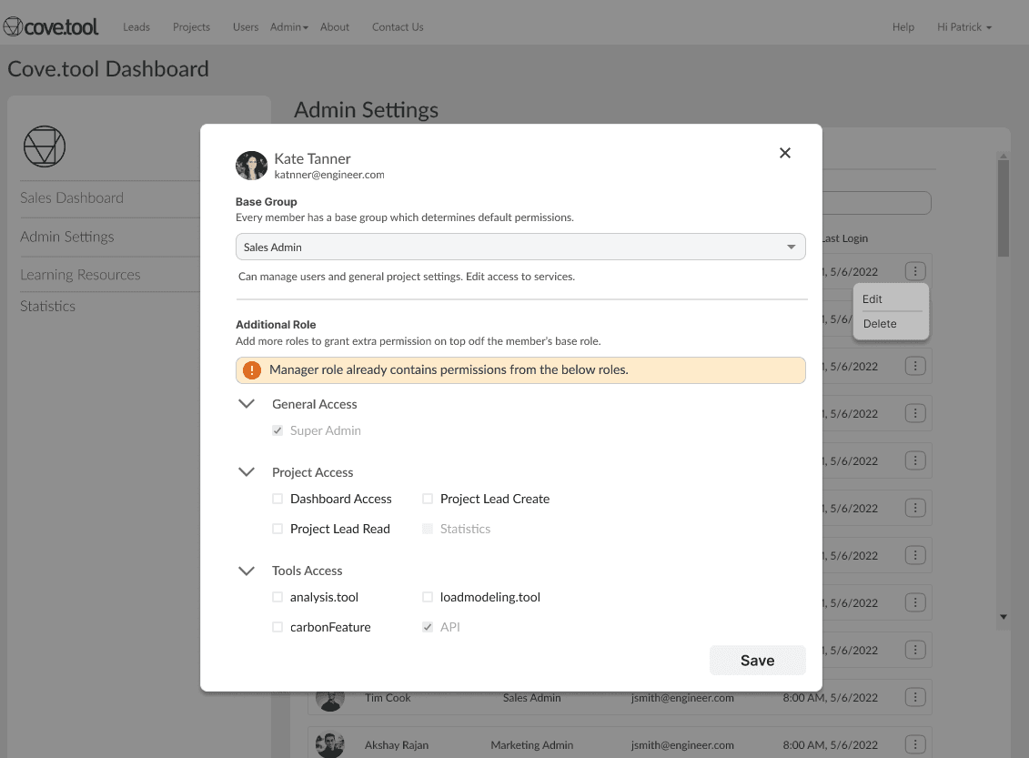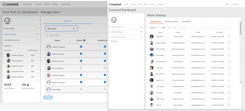 In 2023, we launched a targeted redesign of the admin and permissions settings for RevGen Tool within Cove.Tools, a revenue generation and analysis application originally built for small businesses.